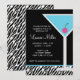 Comece seu aniversário em estilo enviando esses convites de festas de música com um martini azul em um fundo zebra.