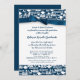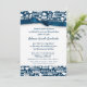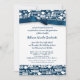 Design de padrão de texto de graduação do estilo Damask em azul e branco e acentuado com um arco azul. Altere o texto conforme necessário. A faixa de opções neste convite é impressa e não anexada. Design de graduação exclusiva e feminina.
