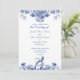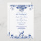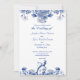 Convites Padrão Floral Chinês Azul e Branco com Pássaro