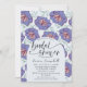 Convites Padrão Floral Dusty Chá de panela Azul e Borgonha