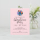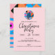 Pinks vibrantes e convite de festas de Natal moderno. design de tipografia de na moda com padrão geométrico roxo e azul-bebê com uma árvore de Natal central com bolhas.