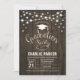 Convite à Festa de formatura rustica com padrão de madeira castanho escuro e luzes de fadas de cordas. Perfeito para uma festa elegante. Envie-me uma mensagem se precisar de mais personalização.