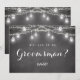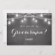 Black Você será meu padrinho cartão de convite com Jarro Mason, Luzes de Corda em um fundo de quadro-negro/ardósia rústico. Use a opção personalizar este modelo para alterar o texto em ambos os lados. Confira nossa coleção da loja abaixo para itens correspondentes | Use a opção personalizar ainda mais para alterar o estilo e a cor do texto, se necessário .