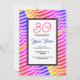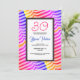 Convite de aniversário com um padrão tropical do arco-íris.