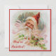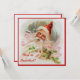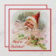 Convite com brilho de pérola quadrada com uma imagem antiga de São Nicolau entre azevinho e fitas cor-de-rosa. Borda vermelha. O verso tem uma borda vermelha. Veja o envelope, caixa de lembrança, etiqueta de lembrança, rótulo, adesivo quadrado e papel de embrulho correspondentes. Veja toda a coleção de convites de Natal na seção INVITES | Invitations & Cards.