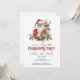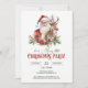 Este animado convite de festas de Natal apresenta uma ilustração impressionante da aquarela em Santa Claus, com sua rena abraçando a coroa clássica vermelha e verde de Natal e groselhas vermelhas e poinsettia, combinação de tipografia com script de brilho em fundo branco. Esta fotografia de tirar o fôlego entusiasmará cada uma e fará dela uma magia perfeita de Natal.
