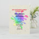 Um convite de aniversário para pinball com uma pintura multicolorido brilhante atrás de um cenário marrom-claro com placas de tinta.