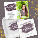 Este convite de festas de formando oferece espaço para 2 fotos, uma vertical na frente e uma segunda horizontal na parte traseira. O design é acentuado com pincéis de tinta roxa escuros.