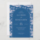 Este convite de casamento elegante apresenta um design inspirado no vintage com uma paleta de cores azul-navy profundo, criando um visual sofisticado e atemporal. O layout é orientado verticalmente, enquadrado por ilustrações intrincadas de paisagens exuberantes e elementos arquitetônicos que adicionam um toque de charme clássico. A forma oval central destaca o texto principal em uma fonte serif limpa, garantindo legibilidade enquanto mantém um ar de formalidade. Perfeito para casais que buscam uma estética refinada e tradicional, este convite define o tom para uma celebração memorável.