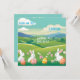 Celebre a Páscoa em um cenário mágico com este convite maravilhosamente projetado! Apresentando uma encantadora paisagem de Páscoa, esta design mostra colinas verdes rolando, um céu azul brilhante, e belos coelhos brancos saltando pela grama, cercados por ovos coloridos de Páscoa. A cena captura a alegria do primavera, fazer-a perfeita para convidar amigos e família a uma encantadora caçada de Páscoas e ovos.