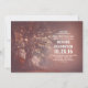 Convite de casamento russo com design de natureza encantada: velhas árvores, florestas e luzes de cordas. Vintage convida para seu casamento ao ar livre na floresta.