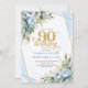 Convites Pale blue gold floral blend fancy 90th birthday