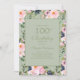 Belo e elegante pincel cor-de-rosa e marinho azul-d-água floral no convite de aniversário verde-hortelã 100º para mulheres. Entre em contato conosco para obter ajuda sobre a personalização ou produtos correspondentes.