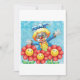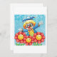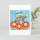 Um palhaço feliz engraçado entre flores amarelas com rostos. Este design parece realmente eficaz nestes Convites