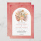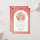 Folhas de palma secas tropicais, erva-pampas e flores de protea, convite de casamento cor-de-rosa. Esta adorável design de casamento apresenta um quadro de arco em fundo cor-de-rosa. No quadro há um buquê de palmeiras secas, flores de proteína e gramíneas-pampas.
