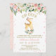 Chá de fraldas das Deer Girls Convite para chá de fraldas de veados, cor-de-rosa, cor-de-rosa, com um arranjo floral de cor-de-água no topo do design em branco e verde-esbranquiçado e um veado de cor-de-água fofo. O design também apresenta um cabeçalho de folha de ouro falso amovível arquivado. Excelente para um chá de fraldas de meninas.