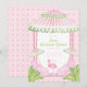 Este Convite de Bachelorette Weekend tem um design pré-disquete do milênio com cabana rosa e verde de Palm Beach pré-curtidas, cabana, cadeiras de piscina e guarda-chuvas cercados por palmeiras. O dorso tem um padrão branco de borda de cana rosa. Você pode personalizar com os detalhes do evento.