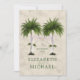 Um convite de casamento elegante para "Sob o Chuppah" e Palm Trees. Duas palmeiras elegantes fazem parte da cobertura sobre os nomes noiva e noiva e a data do casamento. Elegante design de casamento formal moderno. A informação no verso é facilmente alterada para a sua... mudou as palavras para a sua. O script moderno é facilmente alterado para suas próprias informações personalizadas. Um convite de casamento personalizado de uma suíte de papéis de carta de casamento em Belas Designs.