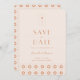 Palm Primavera é um lugar conhecido pelo seu belo tempo e paisagens atordoantes. Se você está procurando um casamento retrô em Palm Primavera, então esse casamento retro de palma primavera, salve o convite de data é perfeito para você! Ele apresenta um sentimento de vintage com uma reviravolta moderna, e é perfeito para qualquer tema de casamento. Além disso, o design elegante fará seus convidados se sentirem especiais. Então, por que esperar? Peça seu convite para o casamento do primavera de palma hoje!