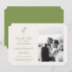 Palm tree wedding Save the Date card designed for a stylish destination wedding celebration. This elegant photo announcement blends tropical coastal aesthetics with modern minimalist typography, perfect for the relaxed yet sophisticated bride planning a beach, island, or vineyard wedding. Style it with linen envelopes, palm motifs, and soft sage green décor for a timeless wedding suite.