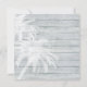 Este convite para o casamento na praia contém palmeiras de silhuetas brancas e duas estrelas-do-mar sobre fundo de madeira em tons de Cinza, branco e preto. É perfeito para qualquer casamento temático na praia, no destino ou no mar. ~