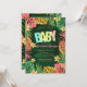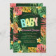 Folhas de palma e flores coloridas, bonitas, sobre fundo verde. Esses convites para chuveiros de bebês são facilmente personalizados para seu evento simplesmente adicionando seus detalhes de evento.