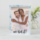 Anuncie seu casamento recente e os convide para sua recepção de casamento com este anúncio de casamento e convite de recepção em praia tropical elegante, com folhas de palma azuis e sua própria foto e texto personalizado. Fácil de personalizar com sua própria foto e texto.