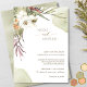 Amigos e família deliciosos com este elegante convite para casamento com uma bonita cor d'água floral de canto com folhas de palma, gramíneas e flores numa bela combinação de tons de terra com verde-oliva, laranja, terracota, lavanda mauve e tons de creme. Traseira do cartão com uma textura de cor aquosa verde-oliva atraente com uma estrutura elegante de tom creme no centro com nomes de casais (que pode ser removido selecionando personalizar ainda mais se preferir design sem ela). Parte de nossa "Coleção Verde Floral de Palmas" com uma variedade de produtos de coordenação disponíveis.