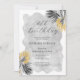 O chá de panela de palma tropical elegante e chic apresenta dois arranjos de folhas de palma desenhadas por linha preta e folhagem dourada. O título de aniversário é escrito em um roteiro moderno e aberto. Uma lavagem aquosa de cinza macia e romântica puxa a design na frente e atrás. Muito fácil de personalizar. Este item faz parte da coleção Elegante de Palma Tropical. A estética do eterno torna isso apropriado para qualquer época do ano.