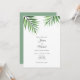 Convite de casamento impresso a partir de folhas de palma de cor d'água pintadas à mão original.