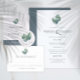 Um design moderno, elegante e minimalista com folhas de palma de monstera verde fresco, cor de água verde, acentuadas com cinzas de ardósia.