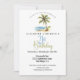 Celebre um marco importante com um estilo costeiro descontraído com este convite elegante de festa de 21 anos tropical. Com uma bela palmeira em aquarela com vista para a costa serena de uma praia, este design cria a atmosfera perfeita para uma celebração sofisticada à beira-mar, festa tropical, reunião de aniversário na praia ou evento de aniversário de destino.