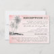 Cartões de recepção de casamento na praia em estilo de bilhete cor-de-rosa com direções incluídas. Por favor, use o botão personalizar para obter mais opções.