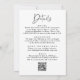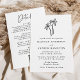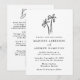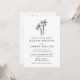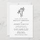 Faça uma declaração de na moda com este convite de casamento de código QR completo moderno. Apresentando uma palmeira preta desenhada à mão perto do topo sobre um fundo branco, esta design exumenta elegância tropical. Personalize a frente com seus nomes, data do casamento, hora e local. A parte traseira contém detalhes adicionais do casamento, incluindo um conveniente código QR para os convidados a facilmente RSVP. Perfeito para praia, destino e temas modernos de casamento.