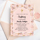 Um quadro de arco sobre um padrão de grama pampas e flores cor-de-rosa e uma cruz ouro. Personalize e adicione um nome e detalhes.