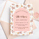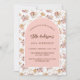 Um quadro de arco sobre um padrão de grama pampas e flores cor-de-rosa e uma cruz ouro. Personalize e adicione um nome e detalhes.