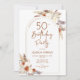 50º Convite de aniversário em terracotta queimou laranja e branco. Belo design minimalista moderno com sotaques botânicos pintados à mão. Apresenta capim de pampas, folhas, rosas e fontes de script de tipografia. Tendy Bohemian estilada tema do deserto perfeito para outono, inverno, primavera ou verão. Você pode escolher convites impressos e/ou fazer o download instantâneo do modelo digital. Perfeito para uma comemoração de 50 dias na moda feminina.
