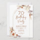 Convite de aniversário em terracotta queimou laranja e branco. Belo design minimalista moderno com sotaques botânicos pintados à mão. Apresenta capim de pampas, folhas, rosas e fontes de script de tipografia. Tendy Bohemian estilada tema do deserto perfeito para outono, inverno, primavera ou verão. Você pode escolher convites impressos e/ou fazer o download instantâneo do modelo digital. Perfeito para uma comemoração de 70 na moda feminina.