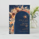 Um código QR moderno e espantoso salva a data do convite para o casamento que inclui os elementos florais de boho pampas em terracotta, matizes rusticadas de outono com arco, contra um fundo azul-marinho. Adicione o URL do seu site de casamento no verso do cartão e o código QR será atualizado ou apagado se não for necessário. Clique em personalizar/personalizar ainda mais para incluir seus próprios detalhes.