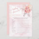 As rosas, pampas e palmeiras, secas por aquarelas, secas a cores aquáticas, folhas florais de design de "Chá de fraldas Word Scramble". A chave do Word está em ordem: Fralda, Enfermeiro, Cobertura, Layette, Swing, Crib, Bassinette, Criança, Recém-nascido e Parto. Design composto por Holiday Hearts Design (direitos reservados).