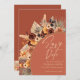 Um código QR moderno e espantoso salva a data de convite para o casamento que inclui os elementos florais de boho pampas em terracotta, matizes de outono rusticadas. Adicione o URL do seu site de casamento e o QR será atualizado. Clique em personalizar/personalizar ainda mais para incluir seus próprios detalhes. A cor de fundo pode ser alterada se desejar.