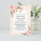 Um quadro de arco e impressão de mármore colorido de pêssego como fundo. Decorados com ouro rosa e flores, rosas e erva-pampas cor-de-rosa. Personalize e adicione um nome e detalhes.