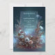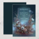 Invite your guests into a moonlit wonderland with this breathtakingly atmospheric botanical arrangement. The design features a lush, crescent-shaped base of dusty rose and ivory rose blooms, intertwined with feathery pampas grass sprigs and soft sage green leaf accents. The background is a sophisticated moody teal gradient illuminated by shimmering glowing stardust bokeh and delicate light trails. A clean, minimalist silver double-line rectangular frame provides a polished focal point for your text. This wedding invitation is the premier choice for a celestial-themed ceremony, a romantic evening garden event, or a modern bohemian celebration. These motifs ensure your event details are presented within an otherworldly and high-end setting that sets an enchanting tone from the moment the envelope is opened.