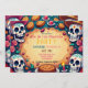 Digam! Para *Pan de Party*, a Día de los Muertos convida que está assado com tradição e fosco em fiesta. Com crânios de açúcar, velas, e pan de muto para frente e centro, esta carta serve para celebrar com um lado de doce delícia. As cores giratórias e o layout lúdico definem o clima para uma noite de música, memória e mágica marigada. A frente exibe todos os detalhes da festa — data, hora, local e regras de fantasia — enquanto a parte de trás é sua para personalizar com informações de RSVP, notas viscosas ou um aviso sobre ladrões de snack fantasma. Traga Seus Próprios Dulces.
