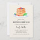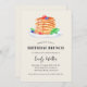 Jogue uma festa de brunch de aniversário com este belo modelo de convite com uma pintura aquosa de uma pilha de panquecas, mel gotejante, menta e bagas.
