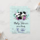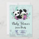 Os convites temáticos do chá de fraldas Panda doce com flores roxas em fundo azul. Fácil de ajustar texto. As fontes de estilo manuscrito são fáceis de ajustar. Excelente para chás de fraldas de temas roxos.
