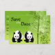 Pandas e Bambu Anúncio de Noivado de Casamento Salvar a Data em Verde, Preto e Branco.