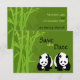 Anúncio de Noivado de Casamento Pandas e Bambu em Verde, Preto e Branco.
