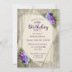 Um convite de aniversário fantoche com um fundo texturizado de madeira criando uma estética rústica, encantadora ou caprichosa. O contraste entre as delicadas flores coloridas e os grãos naturais e resistentes de madeira cria um aspecto elegante e descendente. Basta adicionar suas informações para personalizar o convite de aniversário.