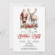 Ilustração fascinada de aquarela em Santa Claus e suas renas - melhorada com a coroa clássica vermelha e verde de Natal e flores de poinsettia combinadas com um guião cintilante de Natal gracioso. Esta respiração tirando convite de festas de Natal animará cada um e fascinará com a mágica de Natal.
